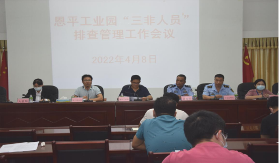 为巩固来之不易的疫情防控成果,保护人民群众生命安全和身体健康,4月8日,恩平工业园召开“三非人员”排查管理工作会议。会议分3场次共120多名企业代表参加,恩平工业园、市科工商务局、市人社局、市疾控中心、河南派出所、河南市场监督所等单位代表出席会议。