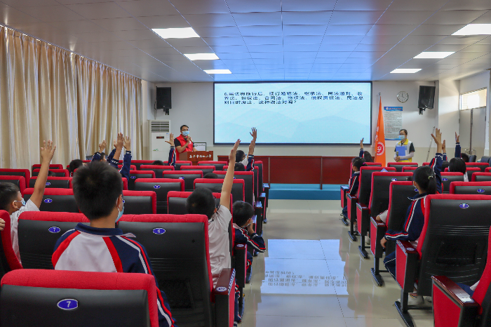 活动中,普法志愿者用通俗易懂的语言讲解了《民法典》的背景、主要内容及重要意义,同时结合贴近生活的事例进行以案释法,使学生们对《民法典》有更加全面系统的了解。普法志愿者还通过趣味竞答的方式,教育引导学生从小树立法治观念,养成自觉守法、遇事找法、解决问题靠法的思维习惯和行为方式,推动法治理念根植于未成年人心中。整场讲座诙谐幽默、通俗易懂,赢得在场学生的一致好评。
