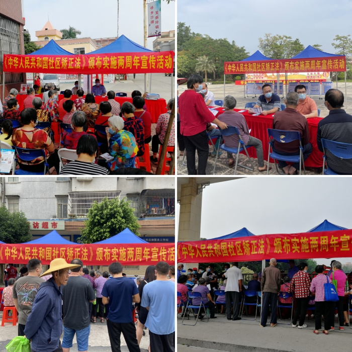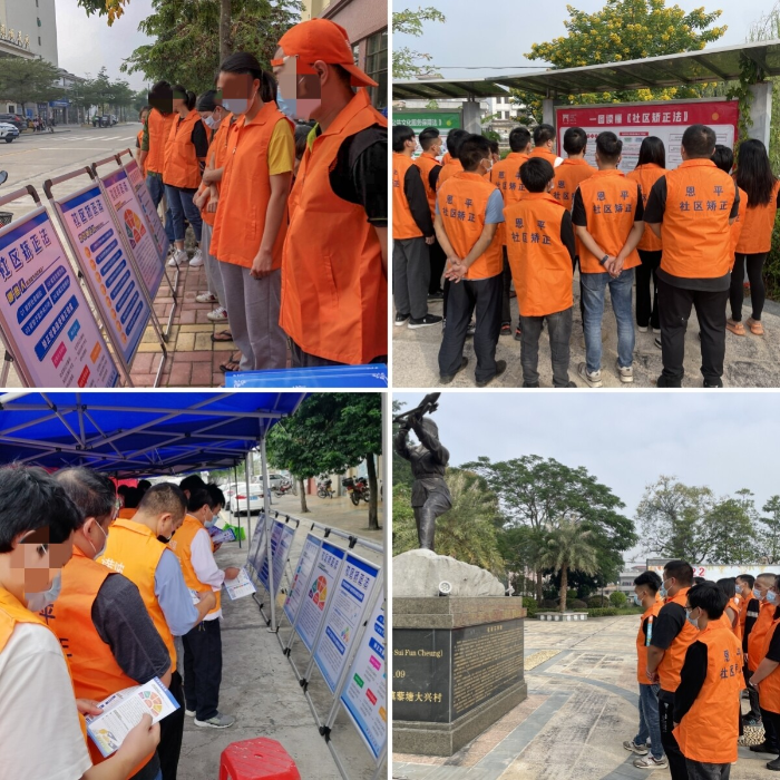 组织群众和社区矫正对象现场通过图文并茂的展示板学习《社区矫正法》,引导群众远离违法行为,警醒社区矫正对象端正态度、遵纪守法,使群众能感受到恩平司法行政机关主动探索思考,创新工作机制,坚持矫正、教育、帮扶并重,坚持法、理、情相融,积极推动社区矫正工作转化为社会治理成效的服务矫正理念。