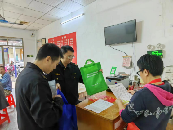 工作人员向群众派发宣传海报
