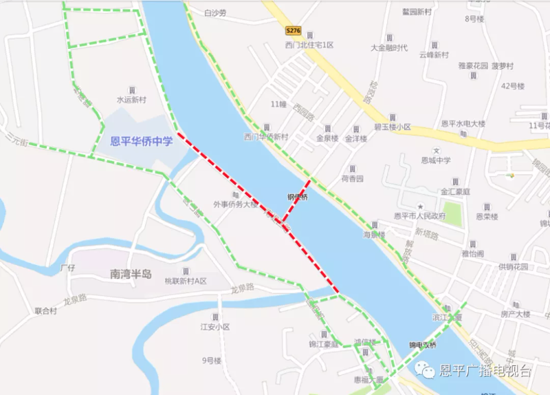因道路升级改造建设的需要,从2021年7月28日起至2021年9月28日止,对南堤路华侨中学至侨联桥段、锦电双桥至恩平大桥段两段道路实施全封闭管制措施。