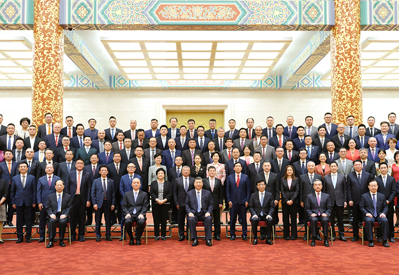 上午10时30分,习近平等来到人民大会堂金色大厅,全场响起长时间的热烈掌声。习近平等向代表们挥手致意,同大家亲切交流并合影留念。