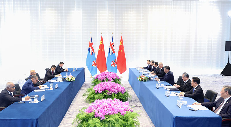 新华社旧金山11月16日电(记者 宿亮 熊茂伶)当地时间11月16日上午,国家主席习近平在旧金山会见斐济总理兰布卡。