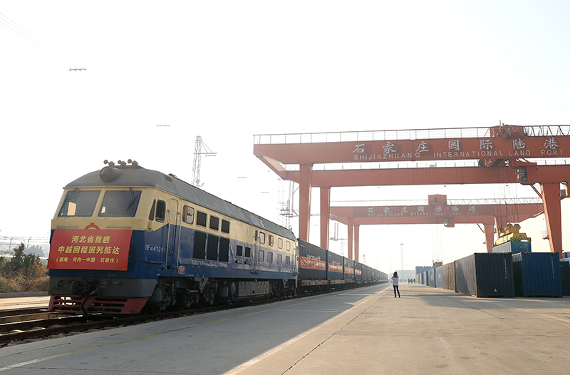河北省首趟中越回程班列抵达石家庄国际陆港(2023年12月5日摄)。新华社发(梁子栋 摄)