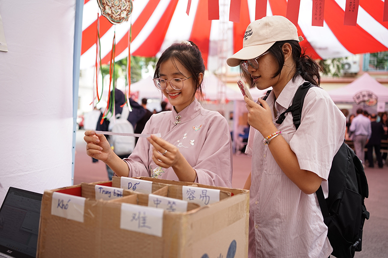 2023年11月1日,在越南河内大学,越南大学生在“同唱一首歌”中国—东盟青年影视歌会活动现场参与猜谜语游戏。新华社记者 胡佳丽 摄